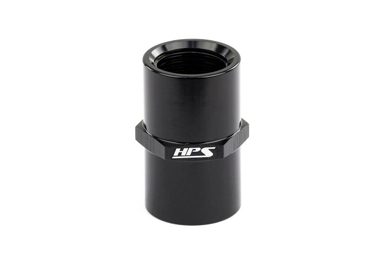 Female 3/8 NPT coupler, ideal for plumbing parts in tight spaces. HPS Straight NPT Couplers are an excellent option where space is limited and hoses can't be used. This female to female coupling offers an easy way to connect two male NPT components in a compact package. Made from 6061 aluminum and anodized in black for durable, corrosion resistant finish. Suitable for use with air, water, coolant, oil, and fuel. Size: 3/8 NPT. Angle: Straight. Connect 2 male NPT fittings safely and securely. Compact size, ideal for use in tight spaces. 6061 aluminum with Type II black anodizing for excellent corrosion resistance.