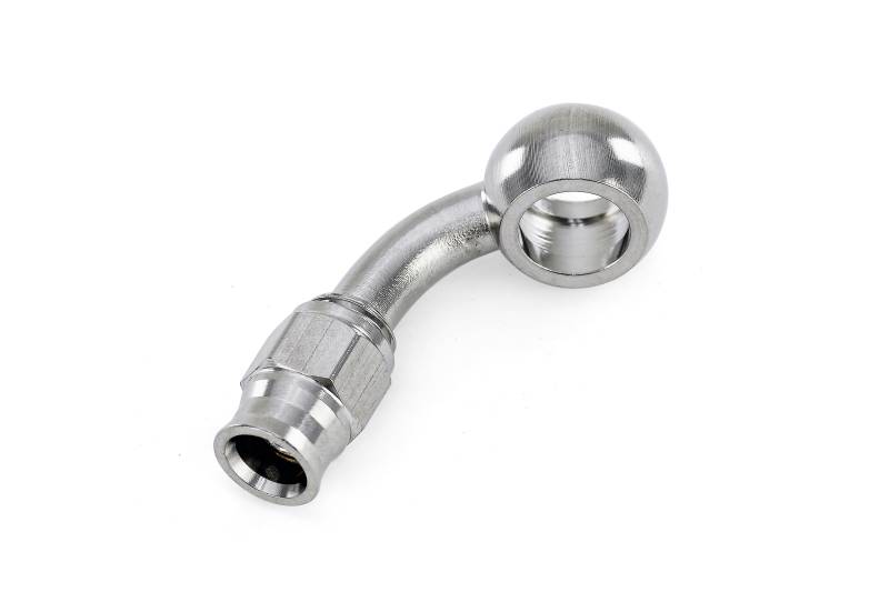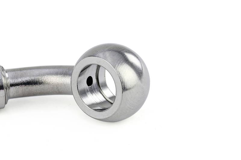 Reusable hose end fitting with 10mm banjo for reinforced PTFE hose. HPS 350 Series Stainless Steel Banjo Hose End Fittings are designed to fit HPS 350 Series PTFE Flex Hoses. This fitting has a reusable design and includes a brass olive to ensure a leak-free seal even during high pressure operation. HPS 350 Series fittings are made with stainless steel for high pressure durability and corrosion resistance. Hose Size: AN-3. Fitting Size: 10mm Banjo. Angle: 75 degree. Designed to work with HPS 350 Series stainless steel reinforced PTFE hoses. Made with stainless steel for durability and excellent corrosion resistance.