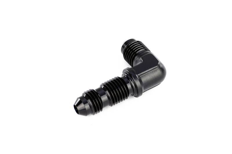 Bulkhead adapter, safely pass lines through firewalls and body panels. Safely and securely connect hoses through firewalls with an HPS Bulkhead Adapter. Made from 6061 aluminum and anodized in black for durable, corrosion resistant finish. Compatible with HPS 150, 250, and 350 series fittings and suitable for transporting air, water, coolant, oil, and fuel. Size: AN-4. Angle: 90 degree. Safely secure and pass lines through firewalls and body panels. Jam nut sold separately (PN AN9244). 6061 aluminum with Type II black anodizing for excellent corrosion resistance.