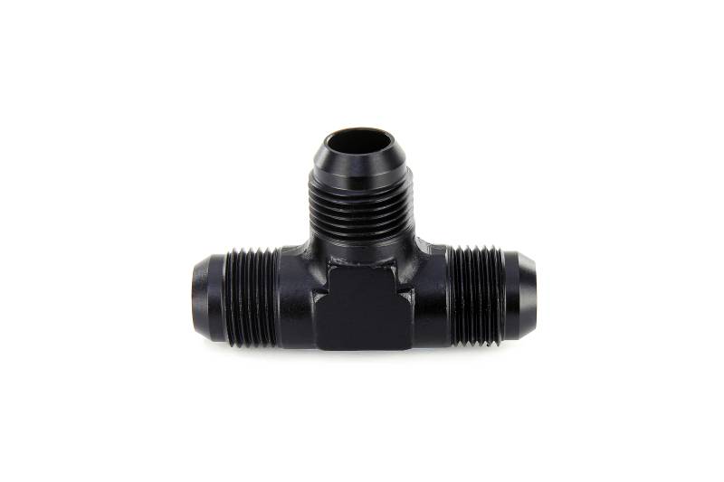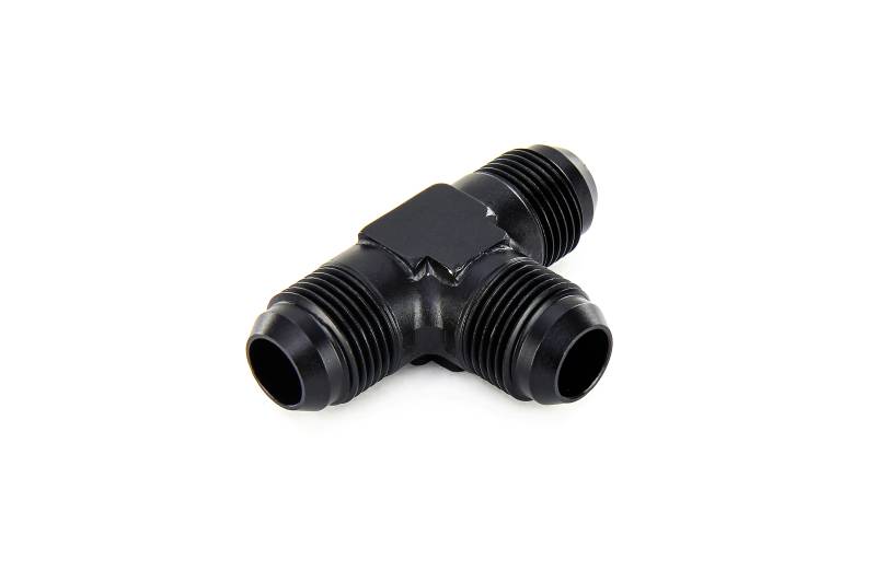 Joins up to three 37 degree flared hoses ends or tubes together. HPS Tee Adapter Fittings connect 3 hoses or tubes with 37 degree flares to create a split or a merge. Compatible with water, coolant, air, oil, and most fuels. Type II anodized black to provide excellent abrasion and corrosion resistance. Size: AN-12. Merge or split 3 hoses or tubes with 37 degree AN flares. Machined from forged 6061 aluminum. 6061 aluminum with Type II black anodizing for excellent corrosion resistance. Compatible with fuel, oil, coolant, alcohol, nitrous, and hydraulic fluid.