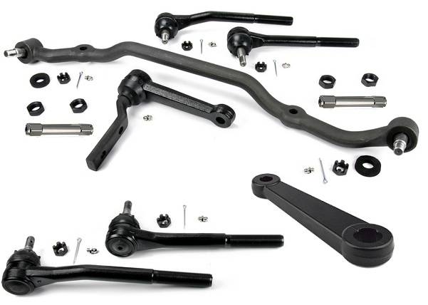 Containing Inner Tie Rod Ends, Outer Tie Rod Ends, Billet Tie Rod Adjusters, Idler arm and Center Link. These parts are built to OE sizes for a perfect fit and made to premium quality standards for great performance. Conveniently packaged with everything you need, all in one easy-to-install kit.