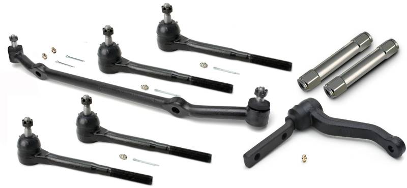Containing Inner Tie Rod Ends, Outer Tie Rod Ends, Billet Tie Rod Adjusters, Idler arm and Center Link. These parts are built to OE sizes for a perfect fit and made to premium quality standards for great performance. Conveniently packaged with everything you need, all in one easy-to-install kit.