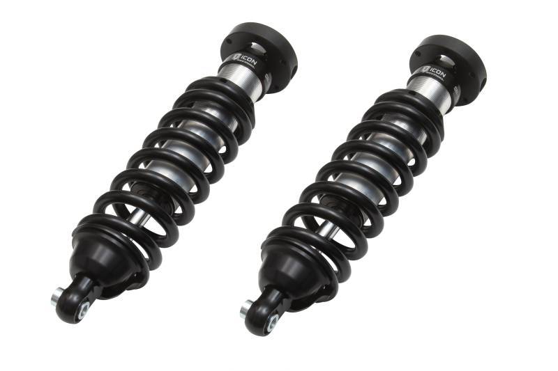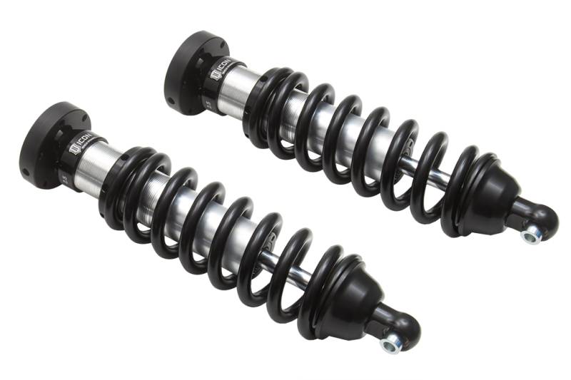 00-06 TUNDRA/01-07 SEQUOIA 2.5 VS IR COILOVER KIT 700LB ICON Vehicle Dynamics V.S. 2.5 Series internal reservoir front coilover shocks are an incredible upgrade for the front end of the 2000-2006 Toyota Tundra and 2001-2007 Toyota Sequoia. These adjustable coilovers allow up 0-2.5” of lift height adjustability, allowing the use of larger, more aggressive wheel and tire combinations. ICON’s Vehicle-specific shock length and valving, their large 2.5” shock body with increased piston surface area over stock components, yield increased front wheel travel along with superior ride quality and suspension performance both on- and off-road. To better support the weight of additional accessories such as aftermarket front bumpers and winches, these coilovers include ICON engineered coil springs with an increased, 700 lbs/in spring rate, allowing for taller ride heights with increased front end weight. When paired with ICON 2.0 or 2.5 Aluminum Series rear shock absorbers vehicle control will be balanced front to rear, resulting in the best overall driving experience for your vehicle. Vehicle specific tuned for superior shock damping, vehicle control, and improved ride quality over stock Vehicle specific shock length and pairing with stock front upper control arms yield increased wheel travel Height-adjustable coilovers offer 0-2.5" of lift height adjustment over stock ICON engineered coil springs with 700 lbs/in spring rate are more ideal for heavier equipped front ends 2.5" diameter shock bodies with internal reservoirs for consistent performance
