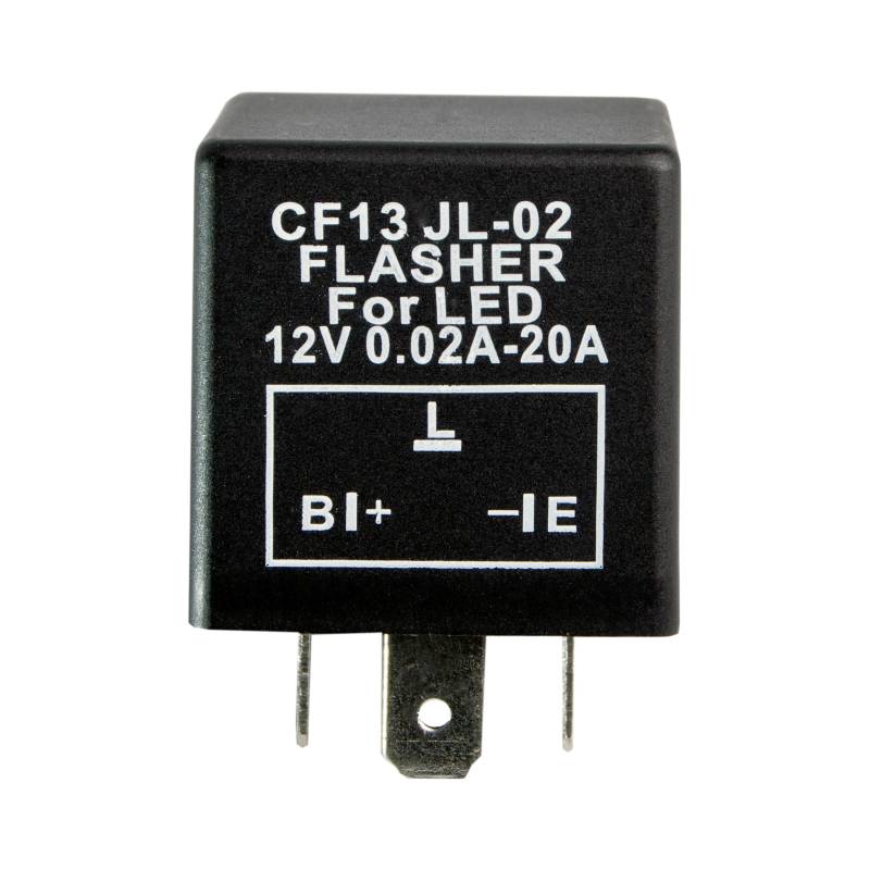 LED 3 Pin Relay Flasher ORACLE 3 Pin Flasher Relay is specifically designed for use on vehicles fitted with LED lights. The ORACLE 3 Pin Flasher will offset the low amperage draw that LEDs operate and are designed to control the flashing rate of any LED bulb used for turning indicators. The ORACLE 3 Pin Flasher Relay is designed to work with low amp draw and will not cause rapid flashing. - Weight: 1.0 oz - Length: 2" - Width: 1.6" - Height: 1.6" Package includes: x (1) ORACLE 3 Pin Flasher Relay For use on vehicles fitted with LED lights