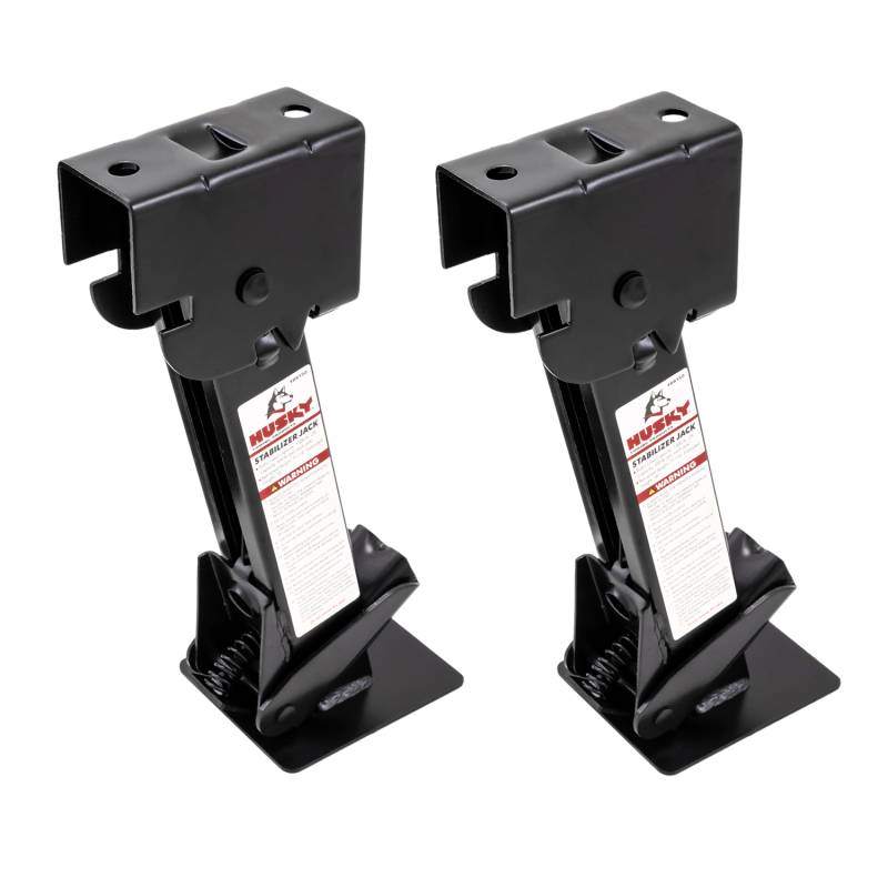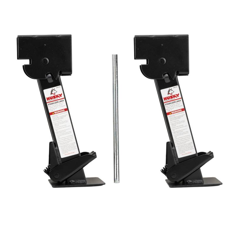 Used To Stabilize Motorhome/ Travel Trailer/ Camper While Parked Protect your trailer from unwanted rocking or tipping when not attached to the tow vehicle with a pair of Husky Towing Foldable Drop Leg Stabilizers. These stabilizers are made from heavy-gauge metal construction for durability and strength, and easily fold flat against the trailer frame or body for space-saving storage. There is no need to remove and store them separately from the trailer - they are always in place and ready for the next time they are needed. The Husky Towing Foldable Drop Led Stabilizers are a perfect addition for small RVs, travel trailers, Marine Trailers and Utility/Cargo trailers. Stabilizing Jacks Help Keep Your Trailer Or Camper Level And Steady Great For Loading And Unloading Cargo Or For Camping Heavy-Gauge Metal Construction Folding Design Lets You Flip Jacks Up For Travel, Down For Use