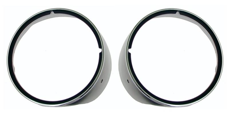 Headlamp Bezels w/ Chrome Trim - Pair Accurate reproduction with correct exterior color and percentage gloss finish. Bright chrome die cats with bonded black matte insert ring. RH and LH pair. Officially Licensed GM Restoration Parts. GM Part # 3962901 LH, 3962902 RH