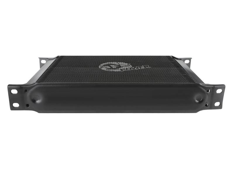 This BladeRunner Oil Cooler uses a durable brazed 25-row all-aluminum stacked plate construction that allows for greater efficiency and lower pressure drop than a standard tube-fin design. Designed to work in-line with your vehicle’s original equipment. Provides lower transmission oil temperatures to reduce transmission wear and extend life of oil viscosity. The BladeRunner Oil Cooler kit makes installation simple with direct-fit mounting brackets, stainless steel hardware, and leak-proof AN connections. No cutting or alteration of factory hardware is required. Features a durable black finish with a laser-etched aFe POWER logo on the front and includes black-anodized billet aluminum AN fittings for a sleek appearance.