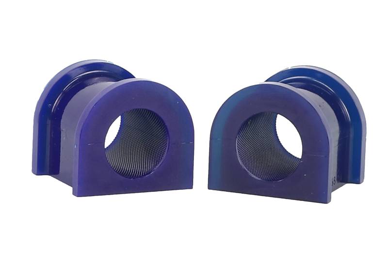 Sway bar mount bushings are one of the most underappreciated components in your suspension system. Responsible for anchoring the sway bars and facilitating proper function and body control of your vehicle the OEM rubber bushings are tasked with quite a job and in-turn wear quickly compromising the effectiveness of your sway bar and contributing to a loose, sloppy feeling on the road over time. SuperPro's sway bar mount bushings are designed to fit the OEM designed hardware and mountings - no generic one-size-fits all bushings and cheap universal hardware here - each bushing is designed to integrate into the factory suspension design and function. Additionally grease retention technology is used in each bushing we make for a lifetime of smooth and silent operation turning a frequent maintenance item into a one-time repair upgrade to keep your vehicle driving like new; for life.