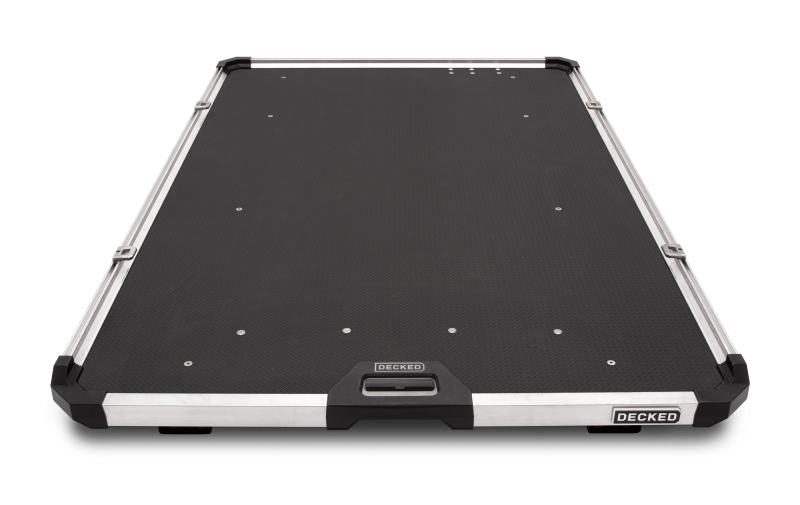CargoGlide - Full-size truck or cargo van CargoGlide is known in the industry as the burliest, most reliable sliding bed tray on the market. Period. Somehow, that wasn't good enough. So we've gone on to make the best even better through improved design and engineering. All-new DECKED design and badging. 75% extension for up to 13" over Legacy's 70%. New grab-and-pull handle for intuitive operation. Lower deck height at 3.9", lower overall height at 5.1". Molded corners eliminate snag points.