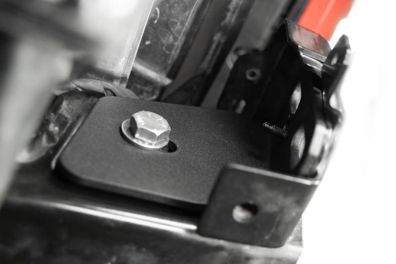 Our Frame Horn Gusset Kit was engineered to reinforce the Bronco & Bronco Raptors failure prone OEM frame horn mounts. 6th gen Broncos have been known to take damage to the frame horn when using a winch or tow hooks during recovery scenarios. This kit installs to the frame horn using heavy duty grade 8 hardware. This enables you to run your stock or aftermarket front bumpers winch and other recovery points with confidence. The heavy duty 1018 steel is finished in a dual-stage hammer black powder coat, and features a fully bolt-on installation. As always, this is Made in America.