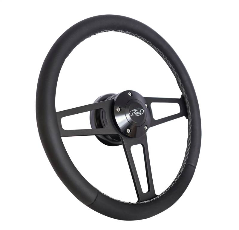 Billet T Series Steering Wheel and Installation Kit; Ford Logo; Includes Billet Steering Wheel/ Center Cap/Install Kit PN[5285] Black;