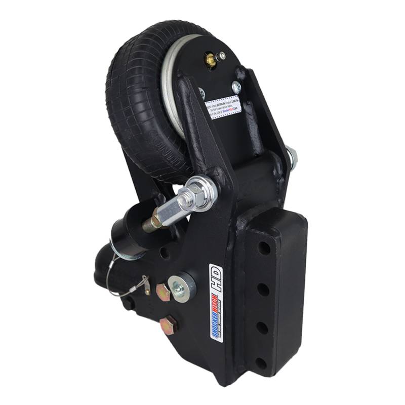 - Air Ride Technology: Built-in 20,000 lb air ride system for a smoother towing experience with built-in height adjustment plus weight adjustable. Travel a lot on concrete highways? No more jarring every time you cross a section divider. Your Shocker air tongue mount with built in air ride and bump cushions, absorbs the thumps, bumps, jerks, tugs & bangs on whatever road you travel.