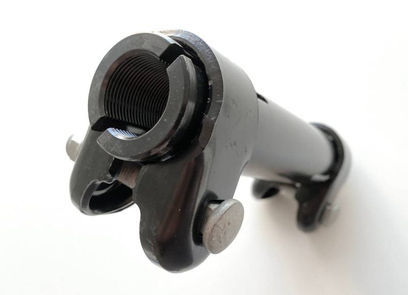 This Adjuster Sleeve utilizes clamps instead of jam nuts and eliminates the need to tack-weld the factory jam nuts to retain steering alignment.
