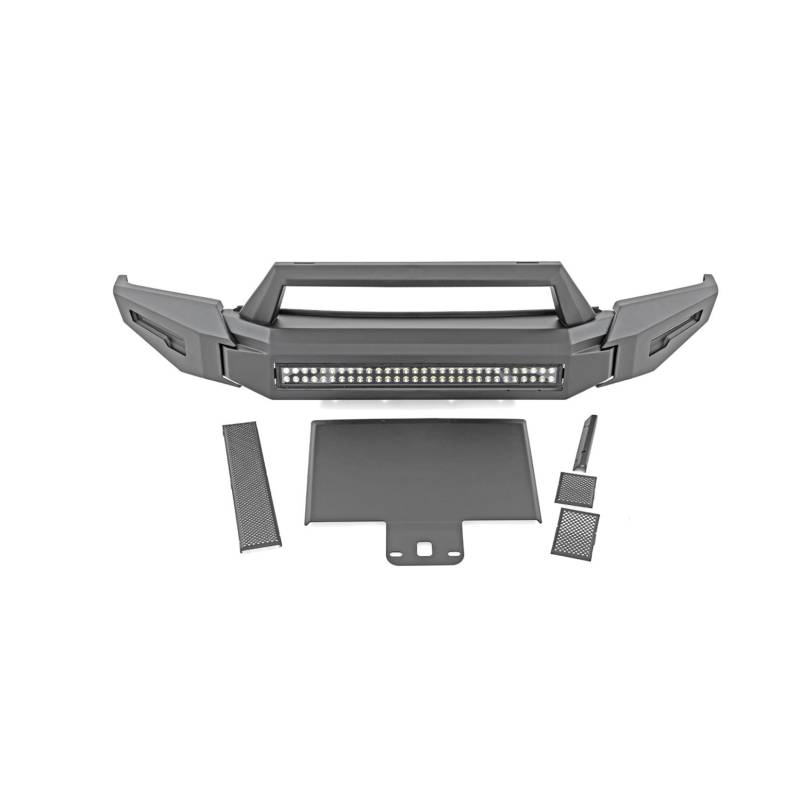 Armour II Heavy Duty Front Bumper Kit Black Horse Off Road Armour II Heavy Duty Front Bumper Kit Matte Black Steel Armour II Front Bumper Includes 1 30in LED Light Bar, 2 sets of 4in cube lights Excl. ZR2 Armour II Heavy Duty Front Bumper Kit-Patented Design- compatible with 2015-2020 Chevrolet Colorado Closely contoured fit for OEM look. Increased ground clearance for better off-road access Modular design - will save heavy freight charges (2 boxes). Bolt-on no drill installation