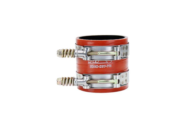 4-ply reinforced high temp fluorolined silicone, replaces OEM intercooler boot This HPS High Temp 4-ply Reinforced Silicone Turbocharger Intercooler Boot is an upgraded replacement for an OEM turbocharger intercooler boot, which is known to weaken and fail over time. Crafted with oil-resistant fluorolined silicone and engineered for superior performance, it is capable of enduring high levels of boost pressure and extremely high temperatures (up to 500F) under the hood, ensuring reliability across various operating conditions. With 4 layers of aramid reinforced silicone and a pressure tolerance of over 100 PSI, boost leaks are a thing of the past. Designed using the OEM component, this HPS product guarantees a seamless fit. Included in this kit are stainless steel spring loaded T-bolt clamps for an easy and leak-free installation. Upgrade your truck or equipment with this boot kit and avoid costly expenses in the long run. Direct replacement upgrade for an old or damaged OEM turbocharger intercooler boot. Withstands harsh high temperature and high pressure operating conditions that range from daily driving to heavy towing. Max. temperature rating: 500F (260C) and working pressure rating of over 100 PSI. Intercooler boot is fluorolined for protection from oil blow by. Engineered with 4 layers of aramid reinforced silicone to ensure long lasting quality over the stock boot. Includes stainless steel spring loaded T-bolt clamps.