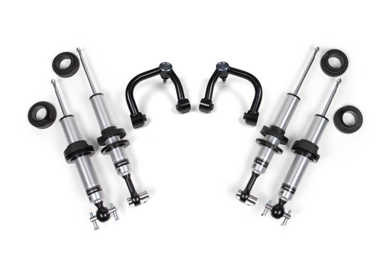 Up front the lift kit includes FOX 2.5 Performance Elite Series remote reservoir coil-over shocks and heavy duty tubular upper control arms for increased strength. In the rear, BDS utilizes a complementary set of FOX 2.5 Performance Elite coil-over shocks for an improved ride.