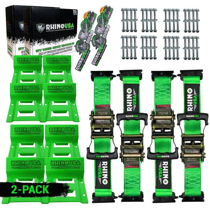 Rhino USA RNO-CHOCKSET-2PK Utv Wheel Chock Tie-Down Kit 4-Wheel Kit Green