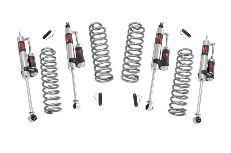 Elevate your Jeep's off-road game and style with Rough Country's 2.5" Suspension Lift Kit. Perfect for larger wheels and tires, this kit enhances your vehicle's ground clearance and gives it a rugged, attention-grabbing look on and off the trail.Lifted Front & Rear Coil Springs: Achieve a taller stance while maintaining factory-like ride quality. These coil springs are tuned to the OEM spring rate for smooth handling whether you're tackling rocky terrain or cruising highways.Custom Shock Options: Select from nitrogen-charged N3 shocks, V2, M1 Monotube, or premium M1R shocks for a ride tailored to your off-road needs and preferences.Easy Installation: Designed for straightforward installation, this kit includes everything you need for a seamless upgrade.Built to Last: With Rough Country's Limited Lifetime Replacement Guarantee, this suspension lift kit is built to endure the toughest trails and environments.Upgrade your Jeep today and experience superior off-road capability and unmatched style with Rough Country's 2.5" Suspension Lift Kit!