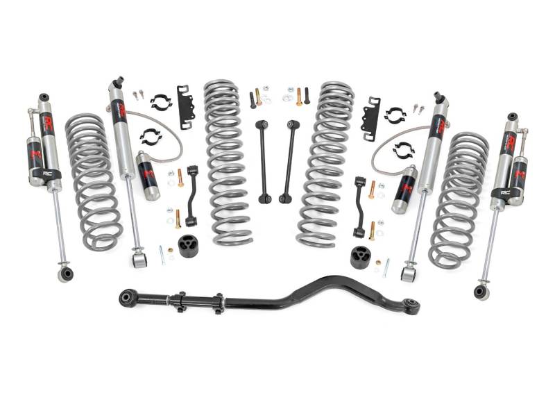Transform Your Gladiator: Take your Jeep Gladiator JT to the next level with Rough Country's 3.5-inch Suspension Lift Kit. Designed for both adventure seekers and daily drivers, this kit delivers legendary off-road performance while maintaining smooth, confident on-road handling.Conquer Any Terrain with Extra Clearance: Gain the ground clearance you need to tackle rocky trails, deep ruts, and uneven terrain with ease. With room to run up to 37-inch tires, your Gladiator will turn heads with a bold, aggressive stance that commands attention on and off the road.Perfectly Level Stance: Eliminate that factory nose-down look with a front-to-rear level lift. This balanced setup not only enhances your Gladiator's appearance but also provides a more stable and predictable ride over any surface.Optimized Coil Spring Performance: Featuring OEM-tuned coil springs, this kit delivers exceptional ride comfort and precise handling. Dual-rate spring technology enhances load support and off-road stability, ensuring your Jeep performs flawlessly whether you're cruising highways or crawling over rocks.Heavy-Duty Forged Track Bar: Keep your axles perfectly centered with our solid forged steel track bar and rear track bar bracket. Boasting a massive 1.25-inch outside diameter and durable OEM-style rubber bushings, it provides unmatched strength and long-lasting performance against the toughest terrain.Quick and Hassle-Free Installation: No need to spend a full weekend in the garage. This lift kit is designed for a straightforward, bolt-on installation, so you can get back to what really matters, hitting the trails.Custom Shock Options for Every Adventure: Tailor your ride to your driving style with multiple shock options, including nitrogen-charged N3, V2, M1 Monotube, or our premium M1R shocks. Whether you want maximum off-road control or all-around versatility, Rough Country lets you build your lift your way.With Rough Country's 3.5-inch Suspension Lift Kit, you're not just upgrading your Jeep, you're unlocking its full off-road potential. Take command of the trail, enjoy a smoother ride, and give your Gladiator the presence it deserves.