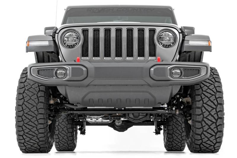 When it comes to your four-door Jeep JL Rubicon, we know you need a lift that won't let you down. Our 3.5 Inch Lift Kit delivers legendary off-road prowess and smooth on-road handling.Increased Ground Clearance: Get ready to conquer those rocky trails and rough terrains like a boss! Our lift kit gives your Jeep Wrangler Rubicon the extra inches it needs to clear obstacles with ease.Front-to-Rear Leveling: Tired of that nose-down stance? Ditch the unbalanced Jeep life with our leveling kit. We bring symmetry to your ride, lifting the front to match the rear, giving you a smooth and steady journey.Tuned Coil Springs for Superior Performance: Your Jeep's handling and ride quality matter, and we get that. Our coil springs come dialed in with OEM spring rates, delivering top-notch handling and a plush ride. Our linear coil rate springs take it up a notch, ensuring impeccable handling and stability, even when the terrain gets wild.Additional Tire Clearance: Who doesn't want bigger, beefier tires? Our lift kit makes room for larger tires (up to 35 inches), giving your Jeep a more aggressive look that will turn heads on and off the road!Heavy-Duty Track Bar: Our included track bar is an absolute beast, constructed from forged solid steel for unparalleled strength and durability. With its massive 1.25-inch outside diameter and rugged OEM-style rubber bushings, it's built to handle anything the off-road throws its way.Durable CV Driveshaft: The factory shaft does not have adequate clearance once lifted and will cause damage to the Rzeppa joint if the driveshaft spins while the suspension is fully flexed or articulated. Rough Country's extended Front CV Driveshaft eliminates this issue allowing you to flex your suspension with more peace of mind!Adjustable Control Arms: The included Rough Country X-Flex Control Arms feature a massive 2.5in diameter body and huge 1.25 threads. The provided X-Flex Joints offer a considerable range, strength, and safety for off-road applications. Boasting an impressive range of motion, Rough Country's upper flex joints pivot 20 degrees, while the lower control arm flex joints are capable of a staggering thirty-five degrees pivot range.Easy Installation: We know you'd rather be off-roading than in the garage all day. That's why our lift kit is designed for easy installation, so you can hit the trails in no time.