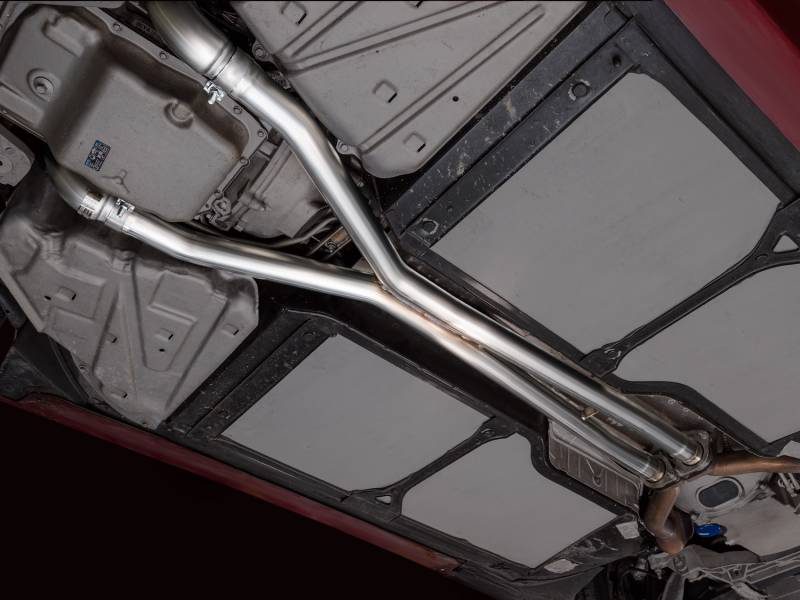 The AWE Performance X-Pipe is a full 2.5” T304L stainless steel, bolt-on mid section. In place lies a precision-engineered X crossover that grants the 6.2L a refined muscle tone with a touch of exotic character.