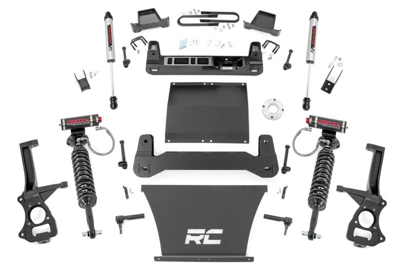 Explore New Heights: GMC's fourth-generation Sierra 1500 features an impressive all-new design that's built from the ground up, with aggressive angles and head-turning stylings that fit in beautifully when transformed with Rough Country's 6-inch Suspension Lift.Innovative Design and Construction: When changing a vehicle's suspension, the key to preserving ride quality is keeping the geometry of all suspension components as close to their factory angles as possible. This suspension kit combines the use of durable steel knuckles and drop cross members to reduce control arm angles and simulate factory angles all while achieving new heights. Featuring a set of upper strut spacers that offer uncompromised strength and rigidity, gaining lift height is no issue. Completing the rear of this suspension kit is a set of rear blocks, shocks, and u-bolts that allow you to retain factory-like geometry. This combined setup provides enough clearance to run 35" tires without additional modifications. We didn't want to limit you to one standard kit. Rough Country's 6-inch kit is configurable with all the shock options that we offer. This allows you to choose which shock series you want! Ranging from our nitrogen-charged N3 shocks to our Vertex reservoir shocks the power to choose is in your hands.Installation: With minor cutting and a strut compressor required to install, an estimated timeframe of 8-10 hours is recommended to complete this full installation. This full kit can be installed at home and can be completed efficiently and quickly!Limited Lifetime Replacement Warranty: Rough Country's 6" Suspension Lift Kit is backed with a limited lifetime replacement warranty towards manufacturer defects. As such, the product is protected from structural and workmanship damage after the date of purchase. With our industry-leading warranty give yourself peace of mind when using Rough Country's Suspension products!