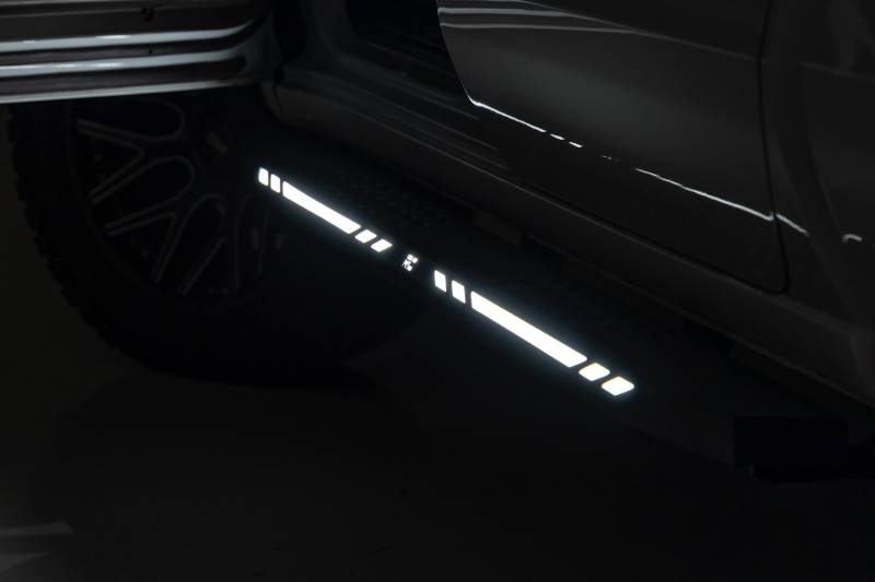 Aggressive Style Meets Everyday Functionality: Upgrade your truck's look and performance with Rough Country's AC2 Running Boards. These premium cab-length steps combine rugged durability, modern styling, and practical convenience in one sleek package.Built for Strength and Style: Crafted from heavy-duty, one-piece steel, the AC2 Running Boards deliver maximum strength and rigidity for long-lasting performance. A black powder-coated finish offers superior corrosion resistance, shielding against rust, wear, and harsh weather.Maximum Accessibility: Easily enter and exit your truck thanks to the wide step surface and lowered profile, perfect for lifted vehicles or daily drivers alike. The cab-length design offers full coverage and enhances your truck's side profile with clean, aggressive lines.Integrated Illumination: Stay visible and stand out with built-in LED lighting. Customizable LED Output lets you choose between amber or white via an internal switch, while Automatic Activation engages the lights when your door opens, thanks to a built-in magnetic sensor.Enhanced Protection and Clean Looks: The AC2 boards also provide a barrier against road debris, rock chips, and mud while covering up exposed frame components for a seamless, finished appearance.Body Lift Compatible: No need to worry about aftermarket modifications, these boards are fully compatible with or without a body lift, ensuring a perfect fit across various setups.Hassle-Free Installation: Install with ease using Rough Country's simple, bolt-on design. No cutting, welding, or drilling required.Warranty You Can Trust: Backed by Rough Country's Limited Lifetime Warranty on structural components and a 1-year warranty on the finish for total peace of mind.