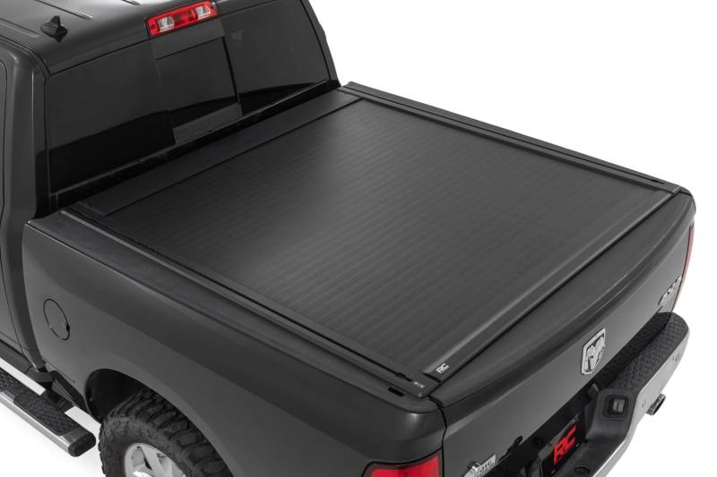 Every truck owner knows the importance of securing and protecting their gear, especially when conquering trails or venturing into the wild. With the Powered Retractable Bed Cover for the Ram 1500/2500/3500, you not only shield your equipment from unpredictable weather but also add an unmatched layer of security and style to your truck. Engineered with precision, this bed cover is designed to serve you whether you're cruising smooth highways or tackling rugged trails.Maximized Bed Access: The cover rolls smoothly to provide nearly full bed access, allowing you to make the most of your truck's storage potential.Heavy-Duty Aluminum Construction: Built tough with a rugged aluminum frame and sleek matte black finish, this bed cover is engineered to endure daily use and intense outdoor conditions without compromising on style.UV Protection for Long-Lasting Finish: Featuring built-in UV protection, the cover resists sun damage, keeping it looking brand new and preventing any fading over time.Lock Your Cover in Any Position: Thanks to its innovative electromagnetic brake system, you can lock the cover securely at any point along the rails, offering total flexibility for your storage needs.Remote Key Fob for Convenient Entry: Open or close your bed cover with just the push of a button using the integrated remote key fob, ensuring easy access even from a distance.Utility Rail with T-Slots: Enhance your storage options with the integrated utility rail, perfect for mounting racks and accessories to maximize your truck's versatility.Integrated Bed Rail Controls: Easily open and close the bed cover from the side rail for added convenience and quick access to your gear.Key Fob-Controlled LED Light Strip: The integrated LED light strip illuminates your truck bed, offering better visibility at night, controlled conveniently via the key fob.Auto-Locking Security: For added peace of mind, the bed cover features an auto-locking function, ensuring your cargo stays secure at all times.Rough Country's Powered Retractable Bed Cover combines style, security, and convenience, giving you the confidence that your truck is looking its best while your gear stays protected.