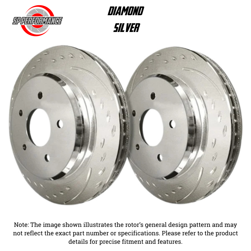 Distinctive Style. Elite Performance.\nStand out with SP Performance Diamond Slotted Rotors. Featuring a unique diamond slot pattern, these rotors combine stunning aesthetics with high-performance braking—perfect for drivers who demand both form and function.