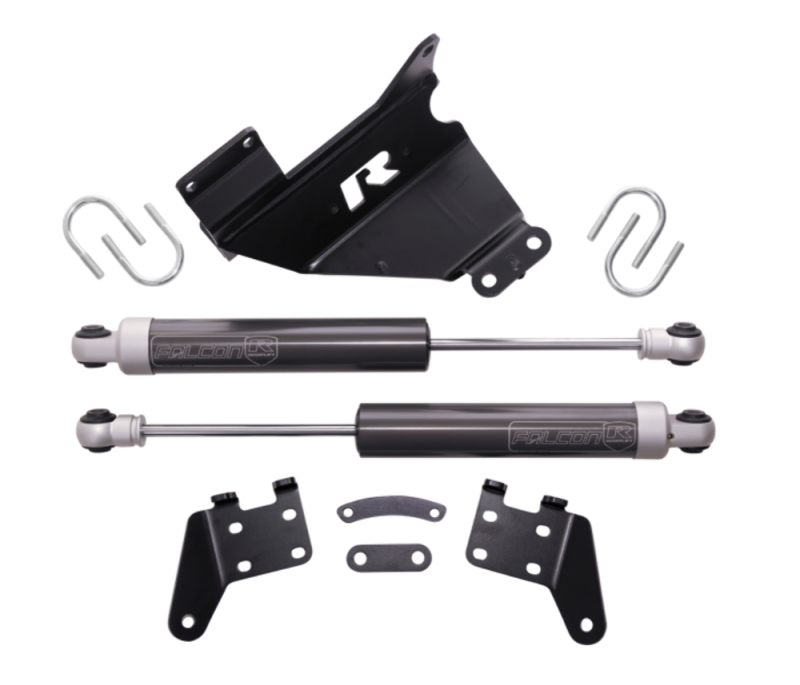 Own the road and the trail with the all-new ReadyLIFT Falcon-Equipped Dual Steering Stabilizer Kits PN 77-13220, engineered exclusively for 2013–2026 Ram 2500/3500 HD 4WD trucks. Built for truck owners who demand more than factory performance, these kits deliver unmatched steering control, comfort, and confidence—no matter where your Ram takes you.\nThanks to Falcon’s advanced steering stabilizer technology, you’ll feel the difference instantly. Tighten up your steering response, tame those big off-road tires, and smooth out every bump, rut, and dip. Whether you’re towing heavy, tackling rough terrain, or cruising the highway, this system keeps your Ram HD stable, precise, and in command.\nDesigned with heavy-duty, trail-proven mounting hardware, ReadyLIFT® stabilizers are built to take a beating and keep you in control. Installation is a breeze, no cutting, welding, or special tools required, so you can bolt on performance and get back to driving.\nAnd let’s be honest, they look incredible. With the aggressive Falcon setup front and center, your Ram HD not only drives better but looks the part, too.\nFEATURES & BENEFITS\nDramatically reduces steering vibration and shimmy from larger wheels and tires.\nDelivers sharper steering response and improved road feel.\nIncludes dual Falcon Series steering stabilizers for superior damping performance.\nCompatible with stock, leveled, or lifted Ram HD trucks.\nRequires a minimum 5.75" wheel backspacing for proper clearance (not compatible with factory wheels).\nBolt-on installation – no permanent modifications needed.\nTake your Ram HD to the next level—stronger, smoother, and more controlled.\nReadyLIFT Falcon Dual Steering Stabilizers — because your truck deserves performance that looks as good