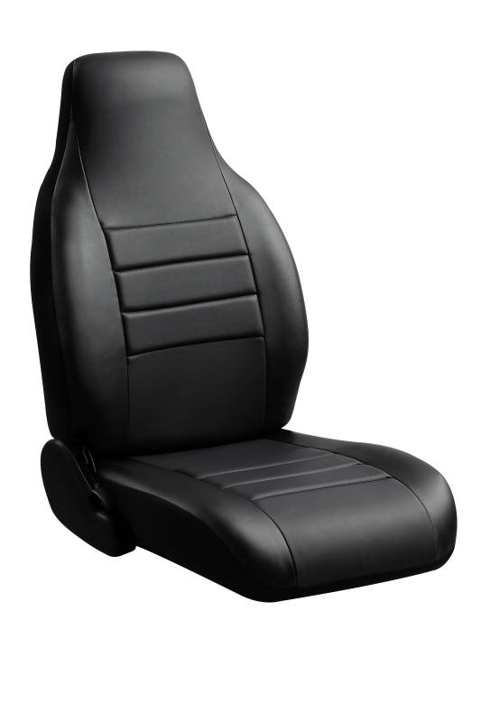 Leatherlite Simulated Leather Semi-Custom Fit Front Seat Cover SL600 Series Leatherlite semi-custom fit seat covers are engineered to meet or exceed vehicle manufacturer standards. An advanced design creates a dynamic state-of-the-art custom interior. On vehicle testing of all Fia semi-custom fit seat covers ensures a quality fit each time. Super- Grip is the slip resistent fastening system that incorporates quick release belt and buckle fasteners, zippers and velcro, making installation quick and easy. Additional foam padding in the cushion and back rest, provide added comfort. The form fit wrap around design that is accomplished through multi-directional stretch trim material molds the cover to the contours of your seat. The soft touch simulated leather material is hand washable as well as lightfast and colorfast. Seat cover fits over the adjustable headrest. Available with black trim and side panel and black, gray, or red center panel.