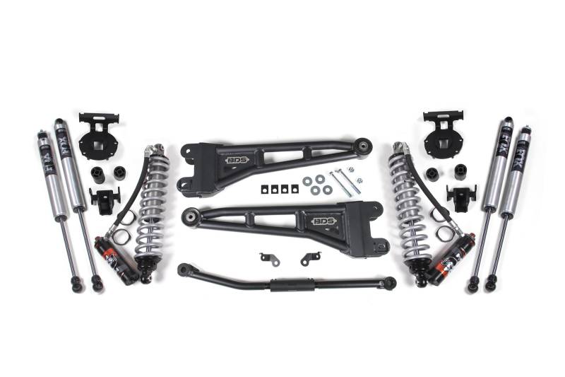 BDS Suspension raises the bar with this 2.5-inch radius arm lift kit with FOX 2.5 Performance Elite coilover shocks for 2011-216 Ford F250 and F350 Super Duty diesel-powered trucks. Designed to improve stance, performance, and capability, this kit includes everything necessary to set your vehicle up right with clearance for up to 35" tires.