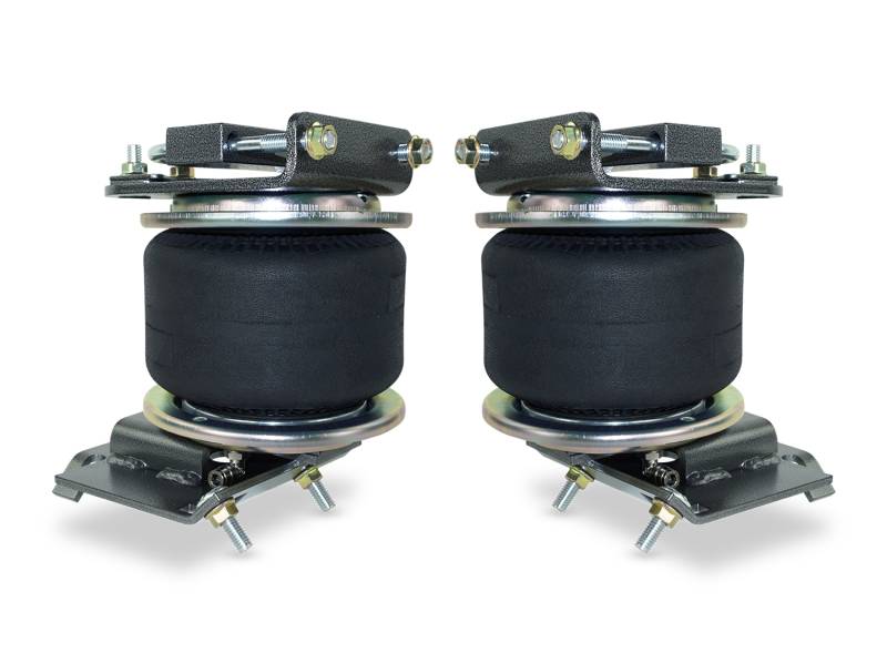 Heavy Duty Rear Air Suspension Kit For 09-26 RAM 1500 - 19-23 RAM 1500 Classic Eliminate truck sag, sway and bottoming out with ALPHA HD air bags / air helper springs from Pacbrake. Don't risk the air leaks and cold weather fractures more common in the plastic end caps of the other guys. Insist on Pacbrake quality, durability and value. ALPHA HD Rear Air Suspension Kit for RAM 1500 trucks. Have you ever noticed a difference in ride control when driving empty vs. driving fully loaded? Your truck's factory suspension was designed as a compromise between capability and comfort. When hauling heavy loads, the rear springs can be pushed to the limit-resulting in excessive bounce, sagging ride height, and an overall feeling of instability. With the simple addition of an Pacbrake Air Suspension Kits, you can distribute weight evenly to your tires, supporting any load without overtaxing your existing system. Pacbrake Air Suspension Kits use our heavy duty air springs (or air helper springs) with one piece aluminum end caps and 20 support wires giving you maximum strength and durability! Each Pacbrake kit is equipped with corrosion resistant roll plates, precision laser cut powder coated steel brackets, grade 5 plated hardware, DOT approved airline and all accessories required for the perfect bolt on install. The Best feature of this kit is that it does not require the bump stop cup to be cut-off, thus lowering your install time significantly. Eliminate truck sag, sway and bottoming out with ALPHA HD air bags / air helper springs from Pacbrake, the only brand with inch-thick corrosion resistant aluminum end caps standard. Don't risk air leaks and cold weather fractures.