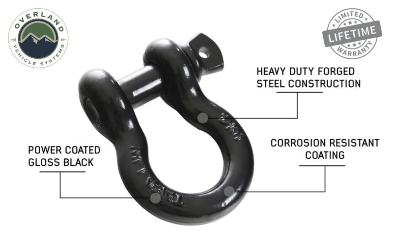 Overland Vehicle Systems 19019901 Recovery Shackle 3/4 4.75 Ton Black