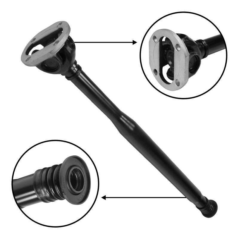 USA Standard Gear Front Driveshaft for Mercedes, 25.75” flange to slip yoke Length 25.75” flange to slip yoke New universal joints, slip yokes, shafts and components ensure a long life All units are dynamically balanced at 3,000+ RPM for vibration-free driving USA Standard Perfect Fit drive shafts are guaranteed for proper fitment and easy installation USA Standard Driveshafts are strengthened over common OE shafts to prevent OE failure