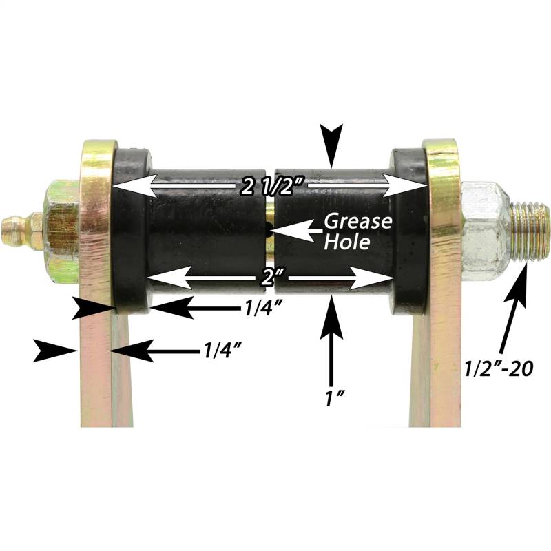 RockJocks greasable front tow shackles for 1976-1986 Jeep CJ vehicles directly replace the stock shackles with our new, heavy duty units. Our shackles feature laser cut, 1/4 in. thick steel side plates, Energy Suspension fluted urethane bushings, grade 8 greasable bolts that feature zerk fittings on their heads for greasing of the bushings, and center bolt-in sleeves for added rigidity. Additionally, our tow shackles feature for quick-disconnect mounting of common tow bars! Shackles are 4 1/4 in. tall from bolt center to bolt center, which is approximately 3/4 in. taller than stock). Finished in corrosion proof gold zinc plating and sold in pairs. Tow bar connecting pins and clips included!