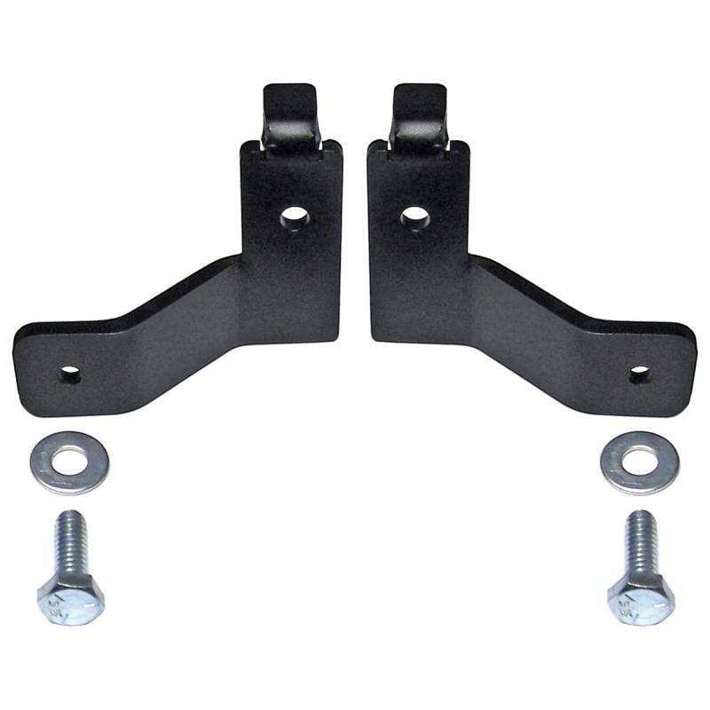 RockJocks front brake hose relocation bracket kit allows the JK Wrangler and Unlimiteds stock brake lines to be retained with a 4 in. lift! Simply remove the lines from the vehicle, bolt them to these brackets with new, supplied hardware and then bolt the brackets back up to the frame into the factory holes using the factory bolts. Kit includes relocation tabs for both front brake lines, 2 bolts and 2 washers.