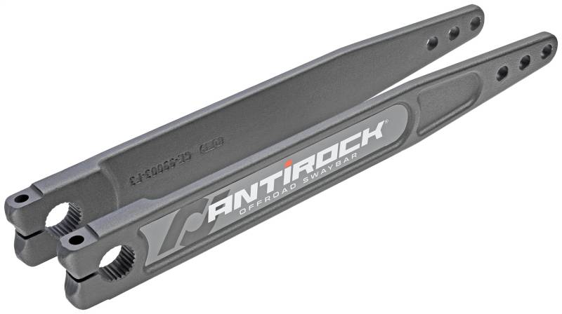 RockJock offers forged chromoly arms for Antirock sway bar kits as an upgrade to existing vehicles or for those looking for maximum strength for their rock crawling rig! These arms provide maximum strength and rigidity via their forged 4340 chromoly construction and I-beam cross section design. Arms are 3/4 in. thick at the splines, 3/8 in. thick body and are 16.2 in. in length center to center, to outer hole. Sold as a pair only. These arms would be the replacement pieces for Jeep TJ, LJ, XJ and MJ front Antirock arms.