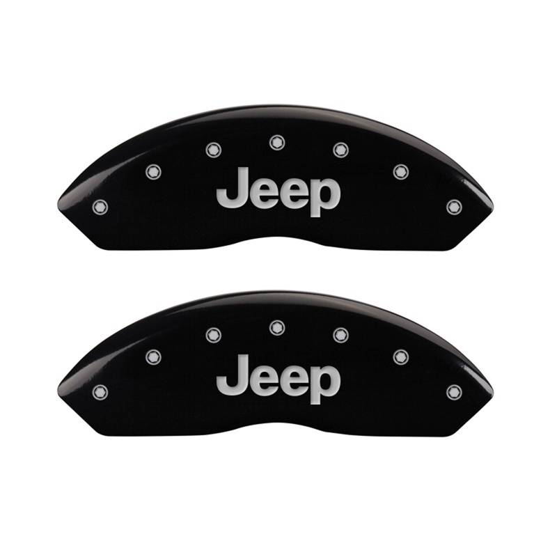 Set Of 2 Caliper Covers, Engraved Rear: JEEP Black Powder Coat Finish MGP Caliper Covers are a car accessory designed and manufactured specifically for your 1997-2006 Jeep Wrangler to cover up and hide those ugly brake calipers. These aluminum caliper covers are finished with a high-quality powder coat. MGP caliper covers will enhance your wheel appearance and curbside appeal with either black, yellow or red caliper covers. MGP Brake Caliper Covers are tested for safety fitment and are licensed by major manufacturers.