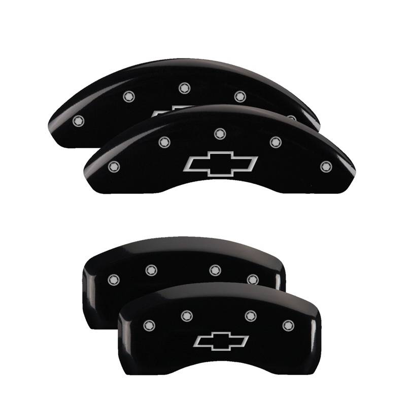 MGP Caliper Covers 14246SBOWBK Front/Rear 4pc Black w/Silver Bowtie