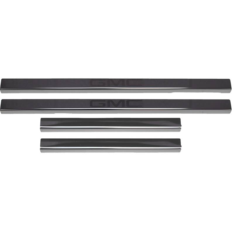 Protect your door sills from damage in style with the Putco GMC Licensed Stainless Steel Door Sill Plates. These quality trim pieces are constructed out of polished T-304 stainless steel, giving them a mirror-like finish. Putco has gone above and beyond and added the GMC logo to the door sill plate via Laser Etch. Each set of door sills are custom made for your truck's year, make, and model for a perfect fit.Every Putco stainless steel door sill plate is backed by a Limited Lifetime Warranty against rust, and made right here in the United States (Des Moines, IA). So, if you are looking to give your truck a little more protection from rocks and other debris, then the Putco GMC licensed stainless steel door sill plates are perfect for you.
