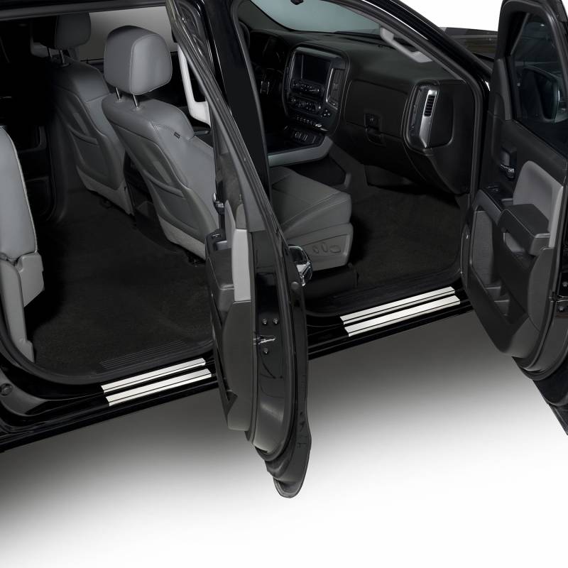 Upgrade your vehicle's exterior styling in an easy and affordable way by purchasing and installing Putco products. Stainless steel is widely used in the production of automotive accessories due to its strength and resistance to corrosion. Designed for elegance, Putco car add-ons will enhance the appearance of your vehicle. The mirror-like surface will be a perfect complement to the OEM chrome trim. The installation process is quick and headache free.Every Putco stainless steel door sill plate is backed by a limited lifetime warranty and made right here in the United States (Des Moines, IA). So, if you are looking to give your truck a little more protection from rocks and other debris, then the Putco stainless steel door sill plates are perfect for you.
