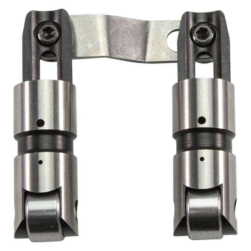 Sportsman Solid Roller Lifter Pair w/ Bearing for Chevrolet Big Block Sportsman Lifters from COMP Cams are designed to be a premium and lighter weight upgrade over Endure-X Lifters and a value alternative to the Elite Race option. Sportsman Lifters are offered in two configurations: a standard/traditional needle bearing axle/wheel design or an optional bronze bushing axle/wheel setup. And for Chevrolets, there are also left or right offset pushrod seat options. Each design features two pressurized EDM oil feeds to the axle, along with an edge orifice feed to the wheel. This design delivers a more reliable oil feed than most other options on the market. Sportsman Lifters also feature a shallower oil band than competitors’ versions for increased strength and rigidity, while internal machining helps to reduce weight. The body design utilizes a skirted wheel that strengthens the lifter ears and also provides more contact area with the lifter bore for further lifter stability. In addition, staked axles eliminate clips and provide robust axle retention. This permanent axle retention feature increases the stiffness of the lifter ears and helps prevent the ears from spreading. Sportsman Lifters are built from 8620 premium steel for increased strength and wear resistance and feature a captured link bar design. They utilize a tapered and slotted link bar tower for reduced weight and improved aesthetics. The lifters also feature a tall body to enable use in both standard and .300" tall lifter bores – the result is increased strength and less lifter bore wear.