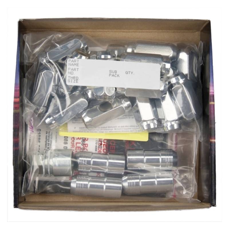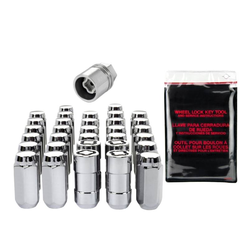 Cone Seat Exposed Style Wheel Installation Kit-Chrome The convenient way to order wheel locks and lug nuts; Contains all the hardware that you need to install 4 wheels and tires.; McGard manufactures wheel locks and lug nuts in the USA to meet or exceed O.E.M. standards for safety and durability.; Presently, McGard is an Original Equipment wheel lock supplier to most automobile brands around the world.; These easy-to-use, one-piece wheel locks function like regular lug nuts, but require a special key tool for installation and removal.; The computer generated key designs allow for an infinite number of key patterns.; McGard lug nuts are guaranteed for life not to rust, chip or peel.; Designed and built for the real world. Think about it, harsh elements, nasty corrosive wheel cleaners, overzealous impact guns, loose fitting lug wrenches and lead-foot drivers. This kind of treatment destroys ordinary lug nuts.; McGard lug nuts can take the punishment and keep your wheels looking beautiful.; Every McGard wheel lock and lug nut is fully machined from restricted chemistry steel made specifically for McGard and through-hardened for its unsurpassed level of security and safety.; For use with steel or aluminum wheels with exposed decorative lug nuts that are tapered at the bottom. This product may contain globally sourced materials/components.