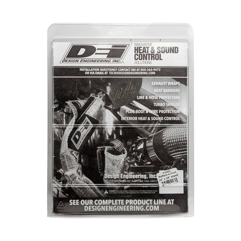 Reflect-A-Cool 24in x 24in Reflect-A-Cool(TM) solves the problem of heat intrusion into interiors and components. Reflect-A-Cool(TM), constructed of fiberglass material backed with a layer of aluminized reflective foil to handle direct continuous temperature of 400F has many uses such as covering firewalls, marine engine compartments, RVs, in the tub of a race car where typical mechanical fasteners cannot be used and has many industrial uses. Reflect-A-Cool(TM) can be trimmed to fit just about any shape. Just measure, trim, face reflective side towards source of radiant heat and remove self-adhesive backing. It's that easy. Protect wires, cables, hoses, pipes & tubing from radiant heat sources Radiant heat protection up to 2000F Self-adhesive backing with release liner for easy installation Moisture & solvent resistant Virtually NO clearance needed Light weight and flexible-Trim to size 0.0065 in. thick Easy to apply, won't lift off DO NOT apply directly to exhaust components. Radiant Heat Protection Up To 2000 Degrees F Self-Adhesive Backing With Release Liner For Easy Installation Moisture And Solvent Resistant Virtually NO Clearance Needed Light Weight And Flexible-Trim To Size