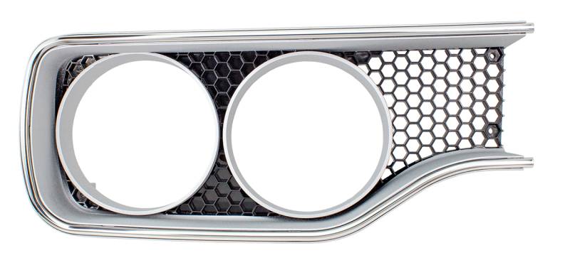 Headlamp Bezel - RH Reproduction OE style headlamp bezel for the 1970 Plymouth GTX. Designed to fit and function as original, each bezel features the correct honeycomb pattern, stainless trim and black coloring. RH = passenger side.