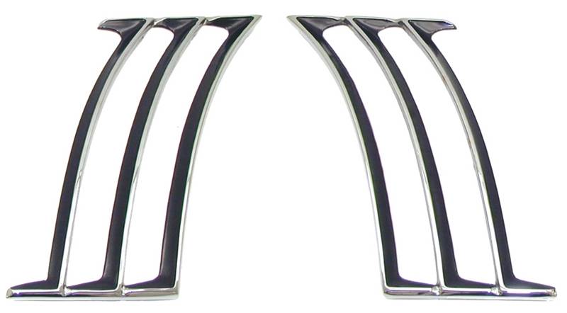 Quarter Panel Louvers - LH/RH Pair Accurate clean casting with heavy chrome and bonded matte black coating. Includes functional self threading pal type nuts for mounting. RH and LH pair. Also available: Louver Mounting Templates (W-725). Officially Licensed GM Restoration Parts. GM Part # 3928528.