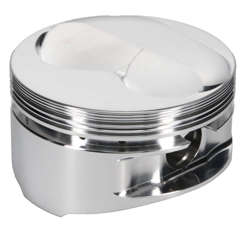 Piston Set, 2618, Dome, 4.155 Bore, 1.125 CD, 0.927 Pin, Set of 8. As the leader in forged racing pistons, JE Pistons has applied over 75 years of experience to its wide range of premium forged pistons for domestic applications. Engineered, forged and machined 100% in the USA, JE Pistons are designed for each specific engine and racing application to provide the ultimate combination of durability and performance. From dirt track to drag strip, JE Pistons? performance is proven in victory lane time and time again. Equip your engine with the best in forged pistons. Forged in the USA using 2618 aluminum, yielding high tensile strength needed for high-demand performance applications Designed specifically for each engine and use application to provide optimized performance durability Proprietary Forged Side Relief (FSR) forging design minimizes friction and power loss with reduced skirt width and saves additional weight with a shorter wrist pin Skirt coating (depending on application) reduces friction and wear on piston skirts and cylinder walls while simultaneously reducing operating noise Accumulator groove (depending on application) helps reduce pressure from combustion gases, reducing ring fluttering and improving ring seal for consistent power