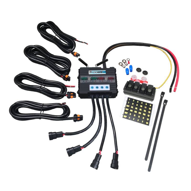 The trigger 4 pllus kit for your Jeep JL or Gladiator cleans up your wiring and eliminates the need to run wires through the firewall of your vehicle. Users can download our Free Bluetooth app and take control of their accessories via your smart phone. Additional features incluede the option to dim and stobe lights. This user friendly kit includes all hardware to install your self at home of at your installer of choice. Fetauring an industry exclusive overhead console the trigger 4 plus for the Jeep JL is and excellent option for your vehicle.