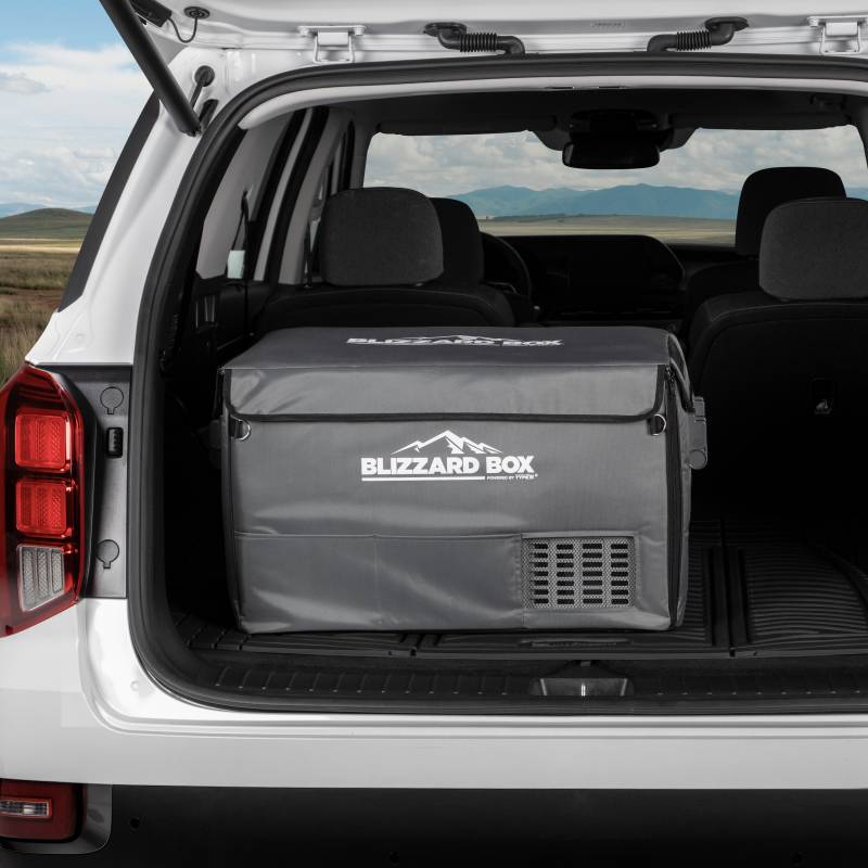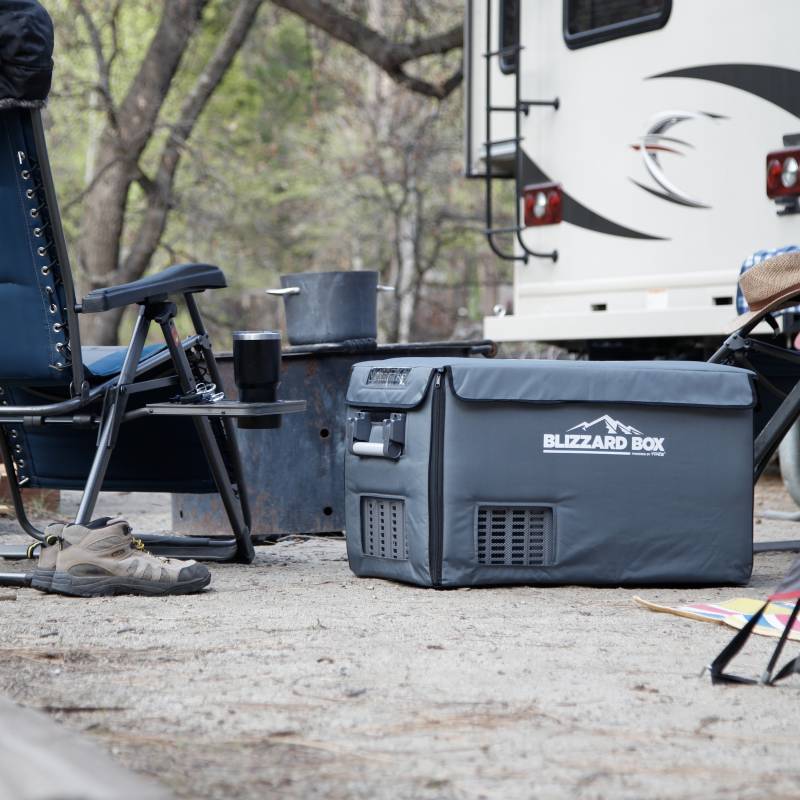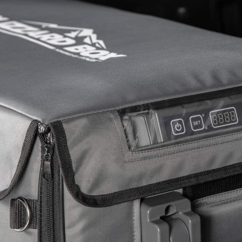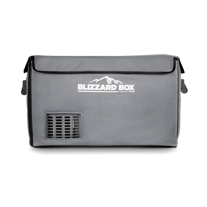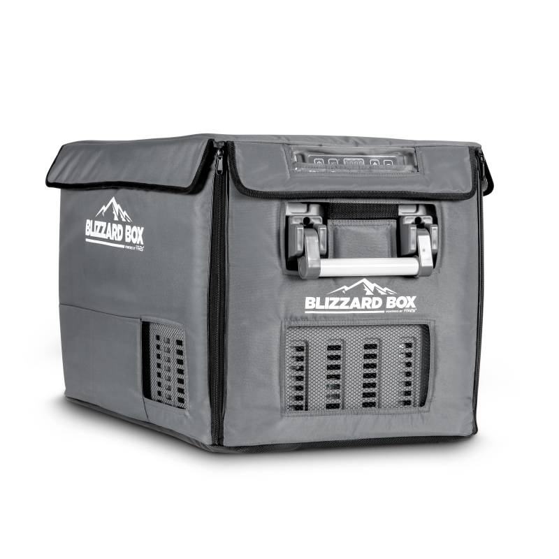 BLIZZARD BOX INSULATED COVER 41QT Protect your BLIZZARD BOX and optimize performance with an insulated cover. This durable polyester cover protects against dents and scratches, while providing splash and UV protection, giving your fridge/freezer an additional layer of armor against the elements. Each cover is tailor made to fit the appropriate BLIZZARD BOX model, and features precise openings for the control panel, ventilation fan, and power plug. Keep your BLIZZARD BOX protected from scratches, dents, water, and UV damage with this durable polyester fabric cover. The inner lining of the cover is made of reflective material, further insulating your BLIZZARD BOX from ambient temperatures. The road to adventure can be a bumpy one. The bottom of our insulated covers keep your BLIZZARD BOX from slipping and sliding around your vehicle in transit. With built-in openings for the control panel, cooling fan, and plug, this cover allows for maximum protection without sacrificing functionality. Installation takes seconds! Simply unfold the cover, slide the fridge inside, zip up the sides, and secure the cover of the lid.